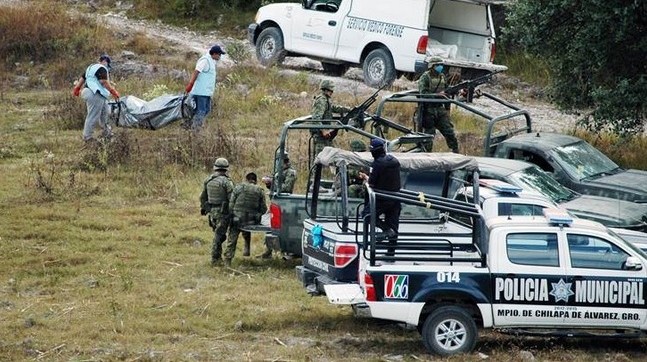 Cuatro cuerpos envueltos en sábanas y en estado de descomposición fueron encontrados en el panteón de la localidad de Nejapa, municipio de Chilapa, a un día de la reunión del comisionado general de la Policía Federal (PF), Enrique Francisco Galindo Ceballos, con familiares de desaparecidos en la cabecera municipal y tras el anuncio de que se desplegarán más agentes por los hechos violentos registrados en las últimas semanas.