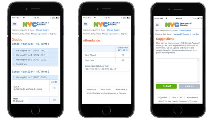 “Todo el mundo en la ciudad podrá acceder a la aplicación y obtener cierta información”, dijo la canciller del Departamento de Educación Carmen Fariña. “Al momento, no es tanto como esperamos tener según pase el tiempo, pero al menos ahora mismo ningún padre nos podrá decir ‘Ay, no sabía que a mi hijo no le está yendo bien’.”