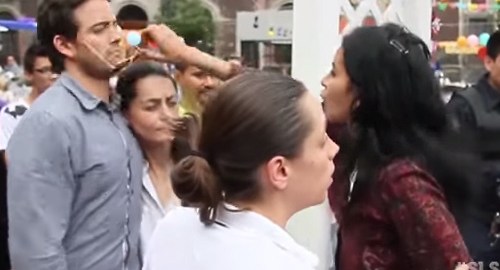 La mujer, quien al parecer es una activista por las muertas de Juárez y los 43 estudiantes desaparecidos de Ayotzinapa, comenzó a manifestarse por su causa frente a las cámaras, cuando decidió confrontar al también cantante.