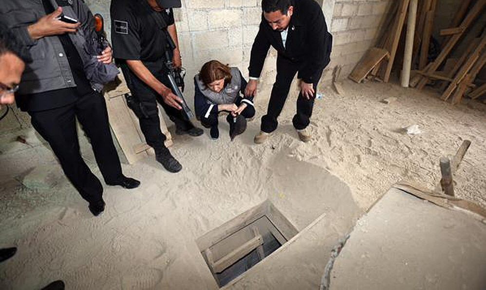 La procuradora mexicana Areli Gómez González ( 2-i) observando la salida del túnel por donde se fugo el narcotraficante. Crédito: EFE