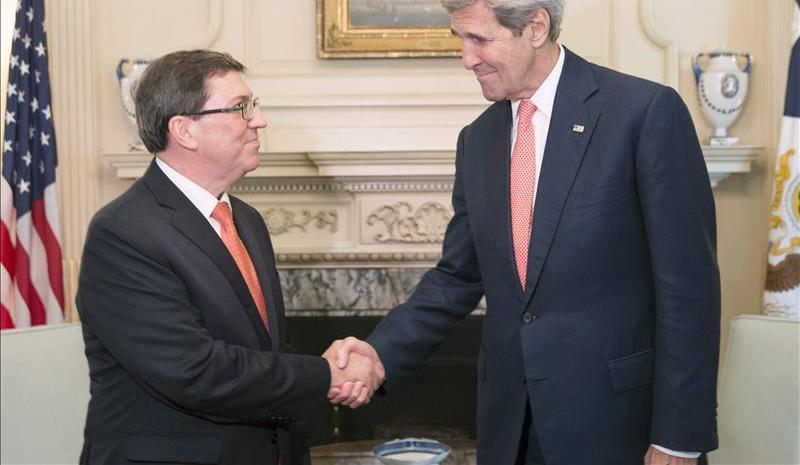 El ministro de Exteriores cubano recordó durante la conferencia de prensa la posición del Gobierno de Raúl Castro de que la normalización de las relaciones diplomáticas, que se restablecieron hoy, no podrá completarse hasta que EEUU levante el embargo a Cuba y devuelva el territorio que ocupa la base de Guantánamo.