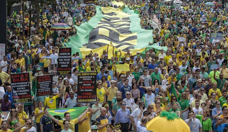 La indignación por la corrupción y la insatisfacción por la situación económica se volvieron a apoderar hoy de las calles de Brasil. Por tercera vez este año, cientos de miles de personas marcharon por las principales ciudades del país para exigir el juicio político a la presidenta Dilma Rousseff, a quien responsabilizan por el escándalo de sobornos en Petrobras y la recesión.