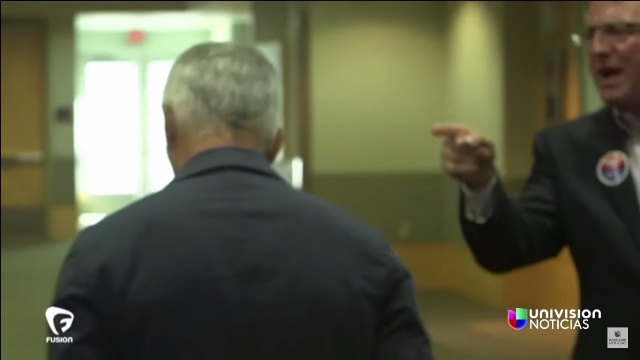 El periodista Jorge Ramos, de la cadena Univision y Fusion, tuvo un tenso intercambio de palabras con un hombre afuera de la conferencia de prensa de Donald Trump, de la que fue echado por intentar preguntar por el plan migratorio del magnate.