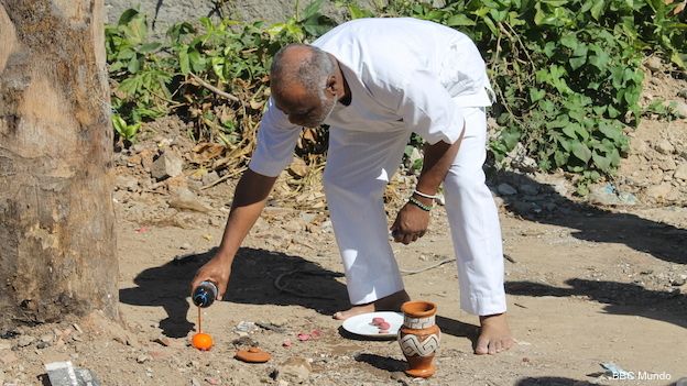 “Es por respeto y por miedo, las dos cosas. ¿Yo meterme con el candomblé? Yo quiero tener distancia, mi hijo”, explica desde el umbral de su casa, con el ceño fruncido, a BBC Mundo.
