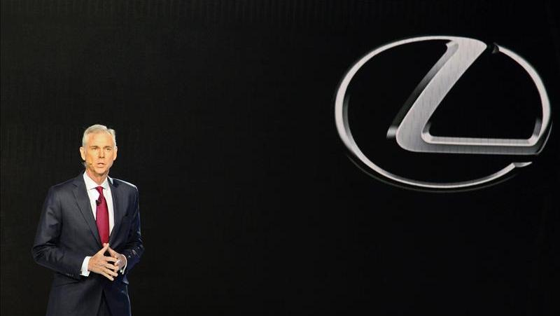 El gerente de Lexus, Jeff Bracken, presenta el nuevo Lexus GS F durante el Salón Internacional del Automóvil de Norteamérica (NAIAS), en Detroit. Crédito: EFE