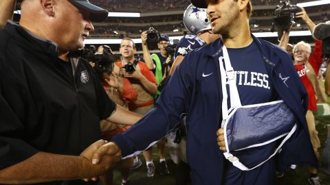 Se espera que esta vez sea distinto y retorne a mediados de la campaña. En su lugar se queda Brandon Weeden, quien contra Filadelfia lanzó un pase de touchdown de 42 yardas a Terrance Williams que fue el remache para el segundo triunfo seguido de los Cowboys. Filadelfia tiene 0-2.