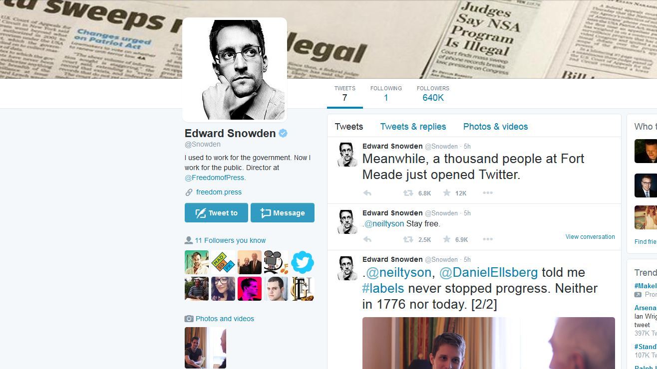 La cuenta @Snowden tenía más de 640.000 seguidores en menos de 8 horas.