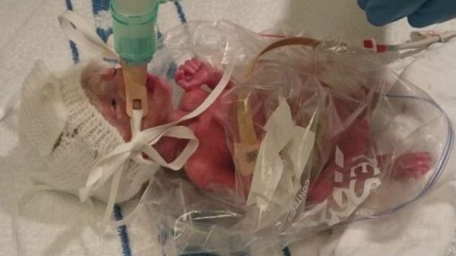 Nació con apenas medio kilo de peso, pero logró sobrevivir gracias a una "incubadora" muy especial. Crédito: BBC