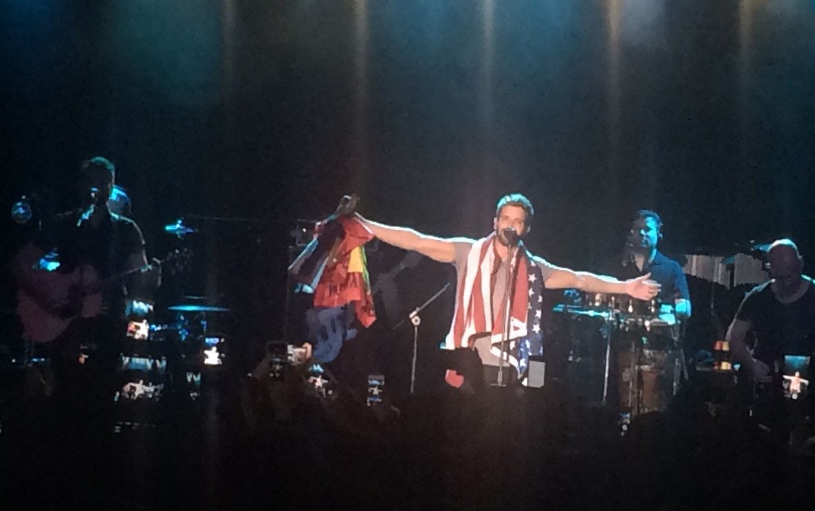 Pablo Alborán cerró el concierto recogiendo dos banderas de EEUU y España. Crédito: Rafael Cores | ImpreMedia
