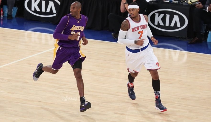 Kobe Bryant y Carmelo Anthony durante el partido en el Madison Square Garden. Crédito: Twitter