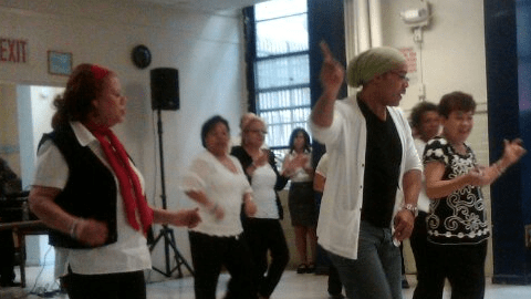 Adultos mayores bailando en un programa de SPARC, que une artistas con centros para "senior citizens". Crédito: Twitter//@MMViverito | Twitter//@MMViverito