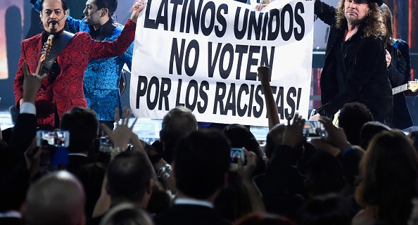 Y como no podía faltar el momento político, Maná y Los Tigres del Norte terminaron este acto mostrando un cartel que decía: “Latinos unidos. No voten por los racistas!”