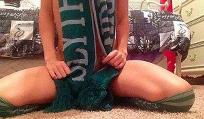 La mujer está tan desesperada por encontrar a alguien que le patrocine tan soñado viaje, que acompaña el anuncio con varias fotos de ella posando desnuda con solo una bufanda y medias de “Slytheryn”, una de las casas de la famosa escuela de magia Hogwarts donde tienen lugar las aventuras de Harry Potter.