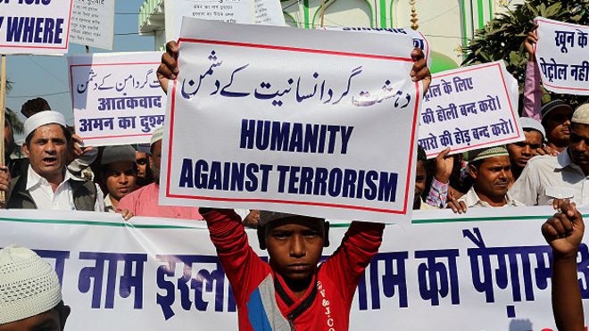 Musulmanes marcharon contra Estado Islámico en India el fin de semana. Crédito: BBC