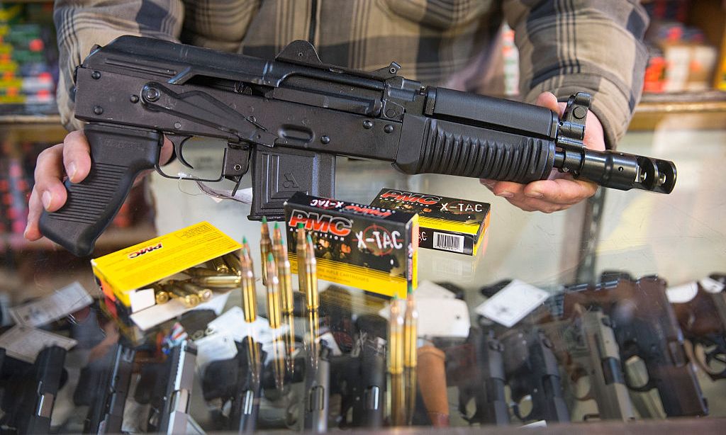 Balas antiblindaje calibre 5.56 mms y fusil de asalto AK-47 a la venta en una tienda de armas de Illinois Crédito: Scott Olson | Getty Images
