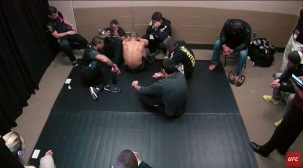 Había pasado ya un rato de su devastadora derrota. José Aldo seguía sentado en una lona dentro de su vestidor con el rostro sobre los brazos y media docena de integrantes de su equipo sentados a su alrededor igualmente abatidos.