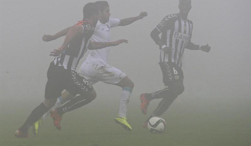 El partido entre el Nacional y el FC Porto, envuelto en niebla. Crédito: EFE