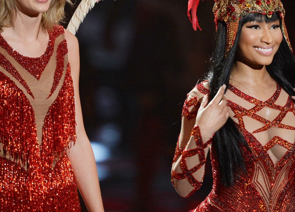 Pero su rifirrafe con Miley no fue el único encontronazo de Nicki Minaj en los MTV Video Music Awards ya que también fue protagonista de un conflicto vía Twitter con Taylor Swift. La rapera desahogó su rabia en la red social al no ser nominada al premio “Mejor vídeo del año” escribiendo: “Si tu vídeo muestra a mujeres con cuerpos muy delgados, serás nominado a vídeo del año”. Taylor -nominada a nueve categorías- se dio por aludida y contestó a la cantante: “Yo no he hecho nada más que quererte y apoyarte. No es propio de ti poner a las mujeres en contra. Quizás fue uno de los hombres el que te quitó tu lugar“. La polémica se saldó con tuits de ambas artistas recalcando el amor que se profesaban la una por la otra.