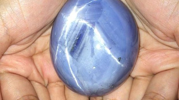 La roca que lo contenía pesaba alrededor de 99 libras (45 kilos). Este tipo de zafiros son muy genuinos y difíciles de encontrar. Reciben ese nombre ya que les aparece una estrella con seis picos cuando recibe la limpieza adecuada y es pulido.