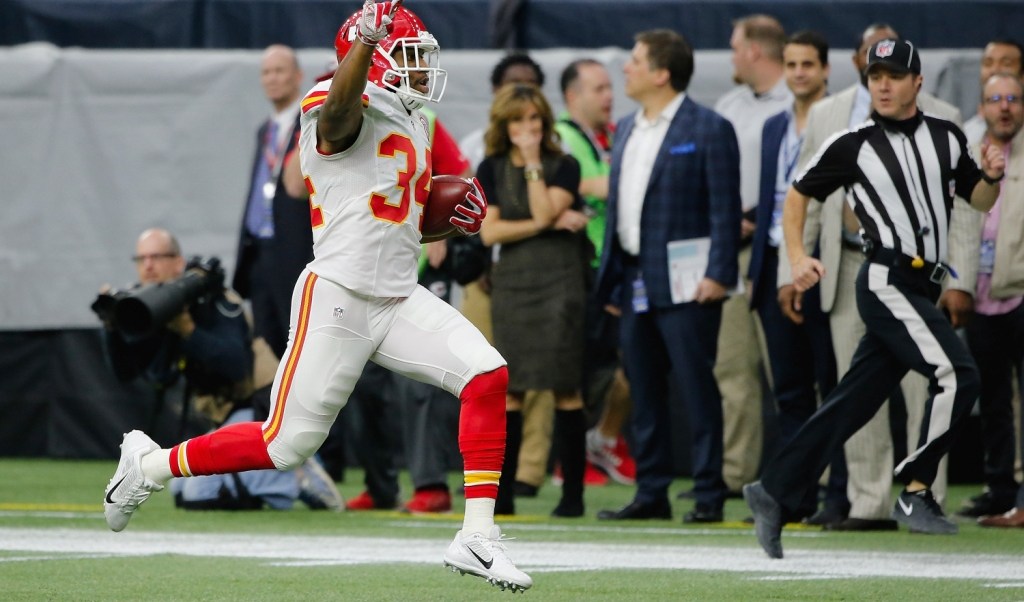 Knile Davis corrió y corrió eludiendo rivales hasta regresar la patada inicial 106 yardas a la zona de anotación para dar una ventaja tempranera a los Chiefs de Kansas City en su visita a los Texans de Houston, en el arranque de los playoffs de la NFL.