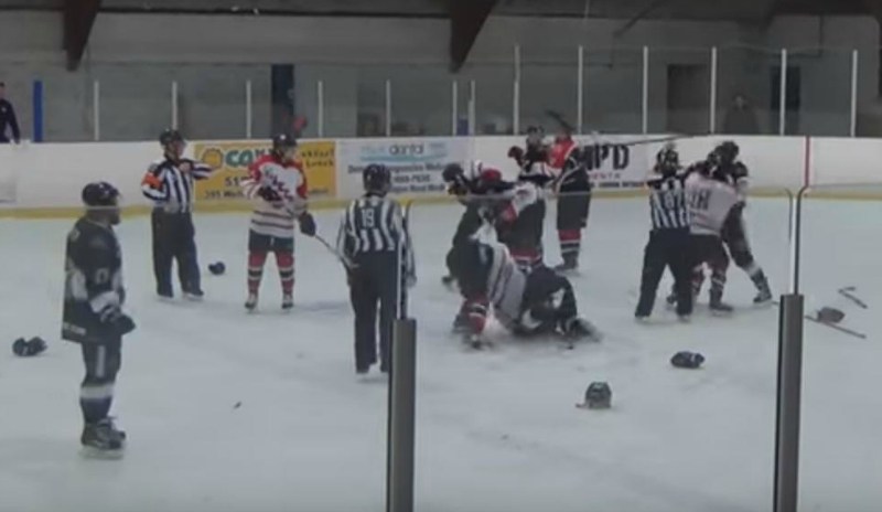 Los participantes de una pelea masiva en una pista de hockey canadiense no se imaginaban quienes se iban a sumar al final