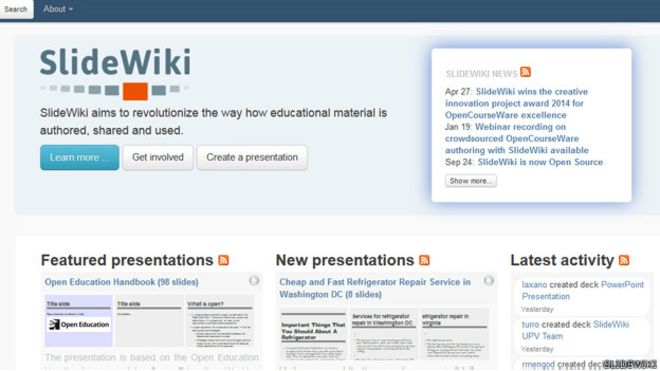 El sitio SlideWiki.org ya funciona, por ahora con muy pocos contenidos sobre temas técnicos. “La idea es que SlideWiki sea algo como Wikipedia, donde la gente también pueda subir aportaciones y pueda acceder cualquiera en cualquier parte del mundo”.