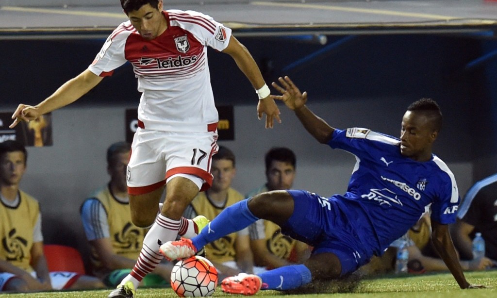 Miguel Aguilar (izq) en un partido de Liga de Campeones de la Concacaf.