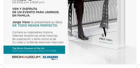 Jorge Viera, presentador de Noticias Univision 41 en Nueva York presenta su primer libro titulado “De todo menos perfecto”, en el que recoge vivencias y travesías de su vida desde que salió de Puerto Rico a los 17 año.