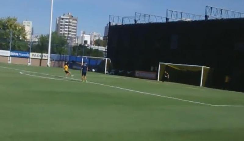 La mira de el 'Apache' está realmente afinada. El jugador de Boca dio una probadita a todos los que presenciaban el entrenamiento del cuadro 'bostero'