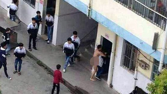 Imágenes tomadas en una escuela secundaria en China muestran el momento en que un maestro intenta violar a un estudiante.