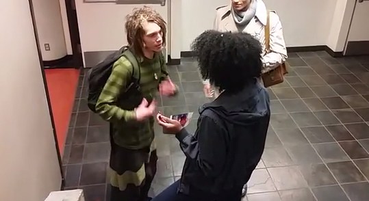 El caso se viralizó en las redes sociales a través de un video de menos de un minuto en YouTube donde se observa como el joven, identificado como Cory Goldstein, trata de evadir la discusión en varias ocasiones.