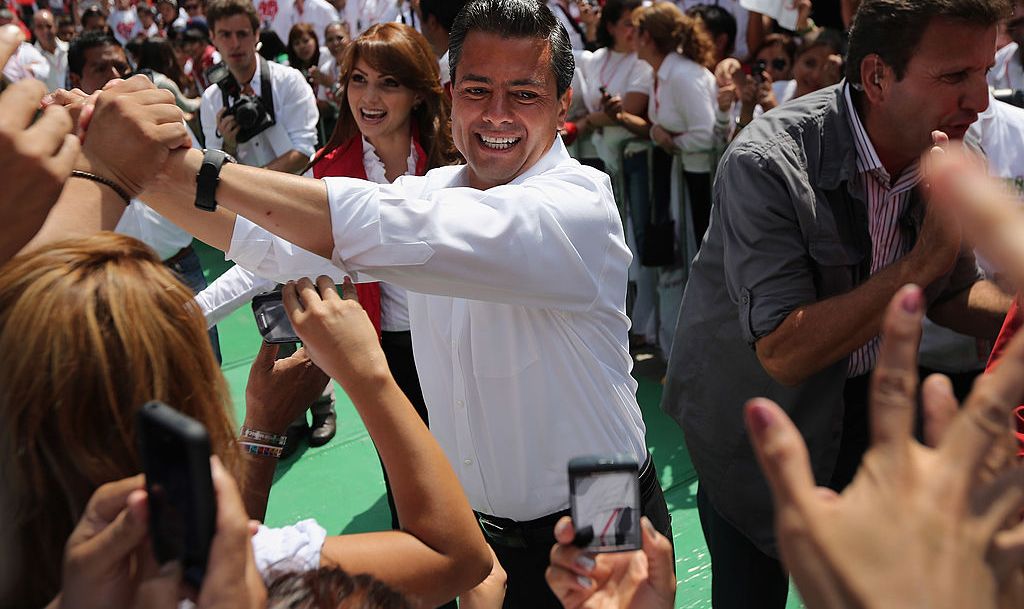 Enrique Peña Nieto, candidato presidencial por el PRI, saluda a sus partidarios en su reunión de la campaña final el 24 de junio de 2012 en la Ciudad de México, México. Crédito: John Moore | Getty Images