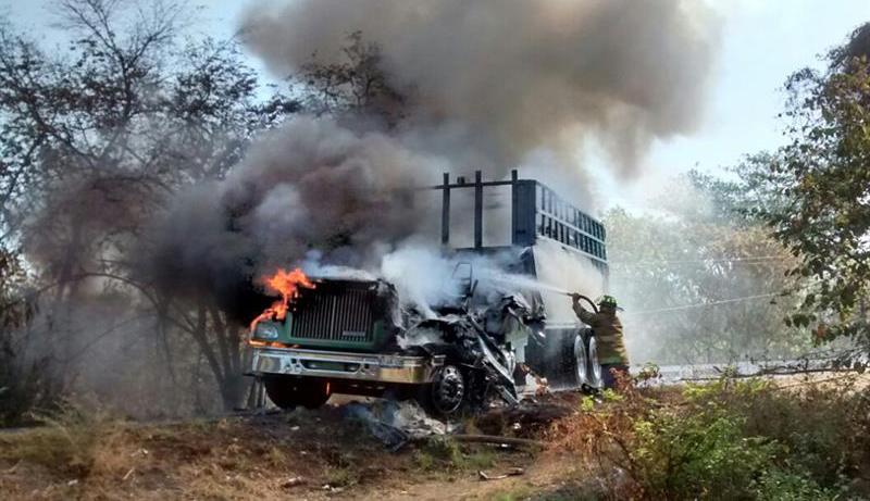 Esta mañana, un grupo de civiles incendió un camión sobre la carretera Apatizingán-Aguililla, a la altura de la localidad de Chandio.