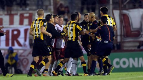 El duelo entre Huracán y Peñarol de Copa Libertadores terminó en escándalo. Crédito: EFE