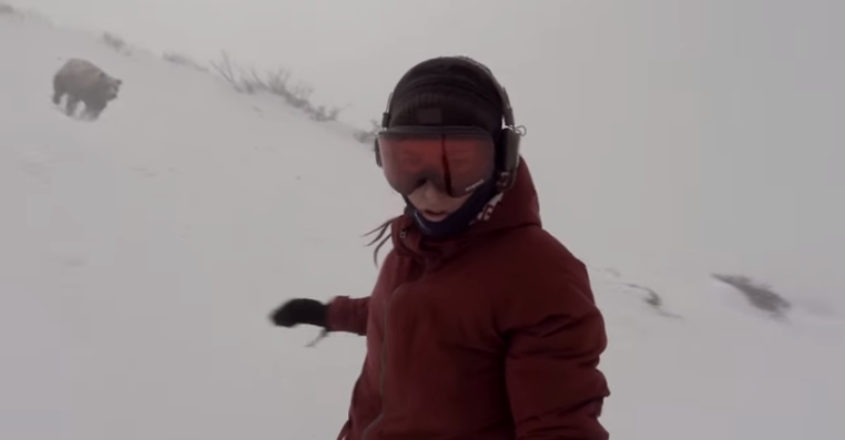 Por fortuna, el ir bajando rápidamente en la nieve ayudó a que el oso no pudiera alcanzar a esta snowboarder, quien nunca se imaginó que su vida estuviera en peligro.