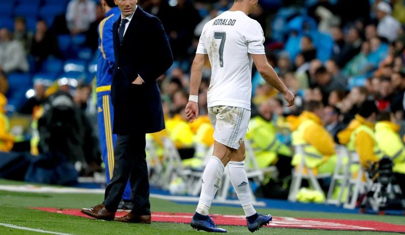 Cristiano se fue de la cancha del Bernabéu sin decir nada y sin mirar a nadie. Crédito: EFE