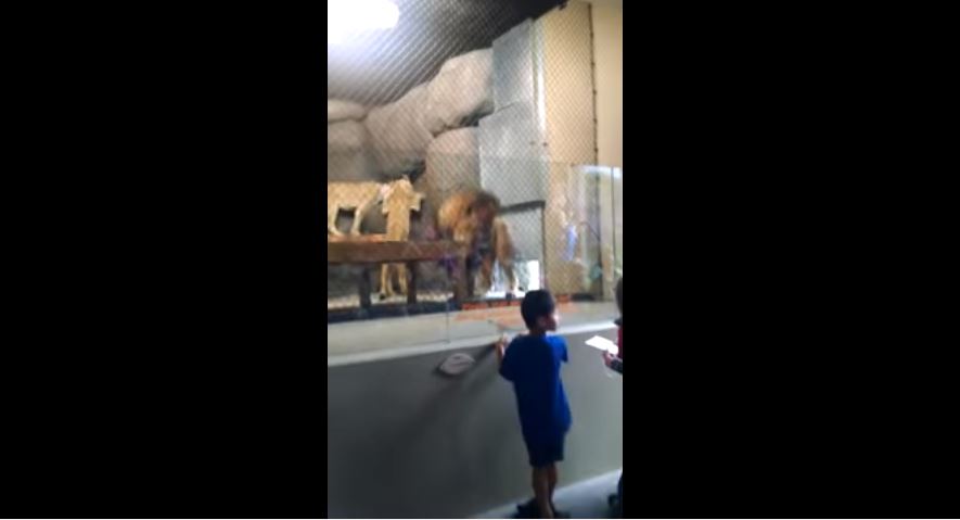 El video del incidente, que fue compartido en redes sociales el martes, muestra al felino llamado Zawadi entrando en un área de entrenamiento en la parte exterior del recinto, cuando de pronto la puerta se vino abajo y atrapó su cola.