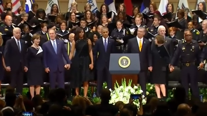 Video: El insensible acto que protagonizó Bush en funeral de Dallas