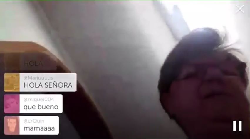 La señora, evidentemente española, sale de la habitación con el celular sin percatarse de que la transmisión continúa y de que los usuarios comienzan a enviarle mensajes a ella. Mientras camina, sigue quejándose sobre el uso de los móviles.