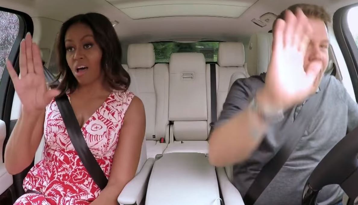 La primera dama ha sido la última celebridad en montarse en el auto-musical del presentador James Corden