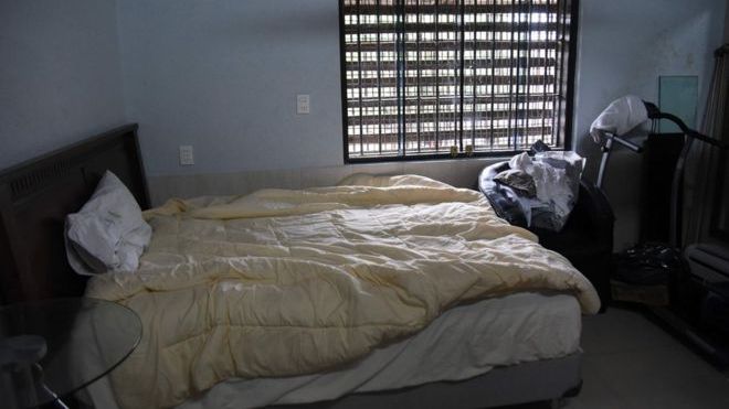 La celda también estaba instalada con aire acondicionado, tenía muebles cómodos, un baño privado y una colección de DVD.