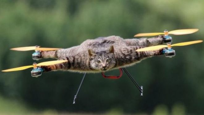 Por eso se asoció con el ingeniero Arjen Beltman, experto en drones, para poner su gato a volar.