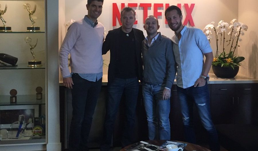 José Luis Higuera (de negro) con algunos directivos de Netflix. Crédito: Twitter | @JLHB33