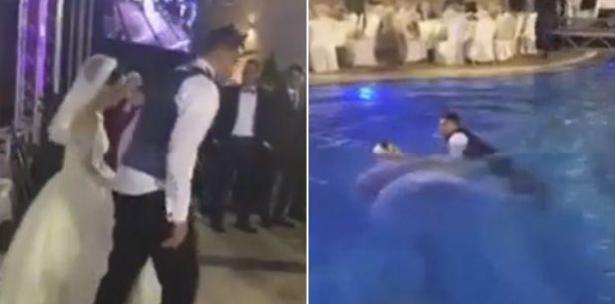 El novio salió primero a la superficie del agua, pero ella, nada que ver. Y lo más curioso del vídeo compartido en YouTube es que nadie se tiró a la piscina para ayudarla a salir.