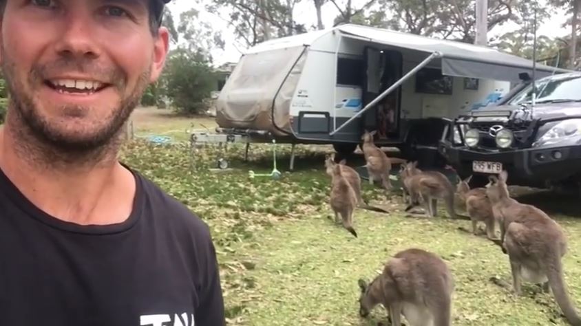 Al día siguiente, una fila de canguros esperaban su turno fuera del camper para recibir el menú del día. El hombre subió ambos videos a YouTube para registrar su anécdota.