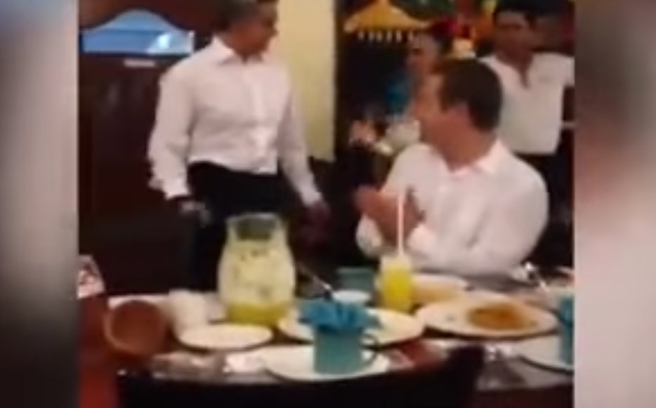 Miguel Ángel Mancera durante una reunión en un restaurante. Crédito: YouTube
