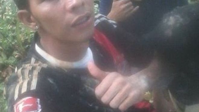Brayan Bremer, quien estaba cumpliendo una sentencia por robo, aparece una de las fotos en medio de la selva amazónica y con el pulgar hacia arriba, presumiendo de su escape. Detrás suyo se ve otro hombre que, según las autoridades, ya fue recapturado.