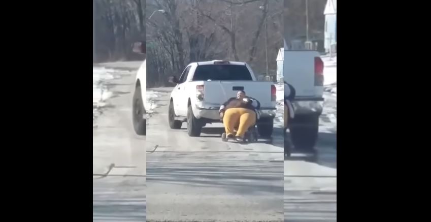Una camioneta blanca enganchó a una mujer obesa en su silla de ruedas y la remolcó por varias calles de Kansas, en Missouri.