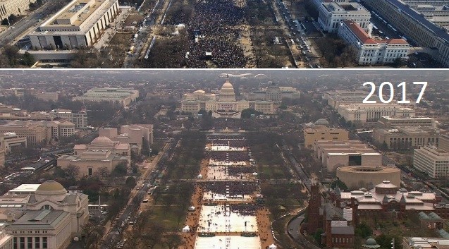 A diferencia de 2009, cuando Barack Obama asumió por primera vez la Presidencia de los Estados Unidos, mucho menos personas acudieron al juramento del presidente Donald Trump.