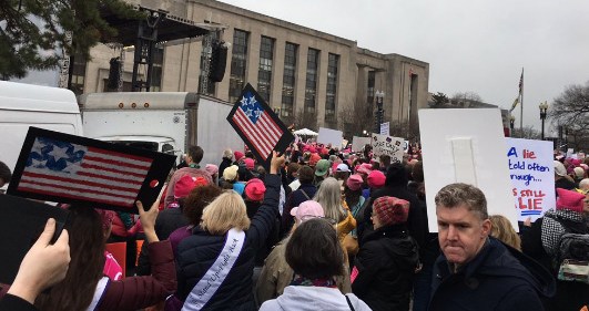 La marcha, que inició como un llamado en Facebook tras los resultados electorales de noviembre, ha crecido en lo que se espera sea la más concurrida hasta el momento.